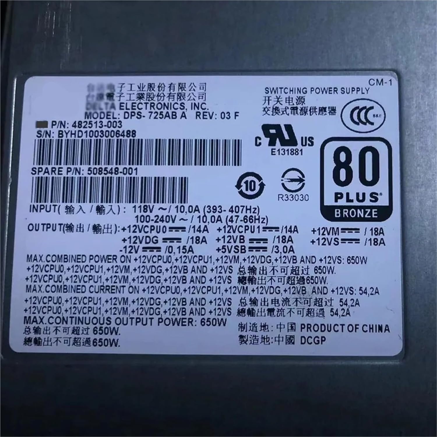 AdaptersPart Number508548-001, 482513-003ModelDPS-725AB AMax Power650WInput118V~10.0A, 393-407Hz100-240V~10.0A, 47-66Hz==========Hign-concerned Chemical : NoneFans : 2PFC Type : ActiveCPU Power Connector : 4 pinApplication : DesktopModel Number : 508548-001Input Voltage : 100-240VModular : Non-ModularOutput Voltage : +12VMax Output Power : 650W