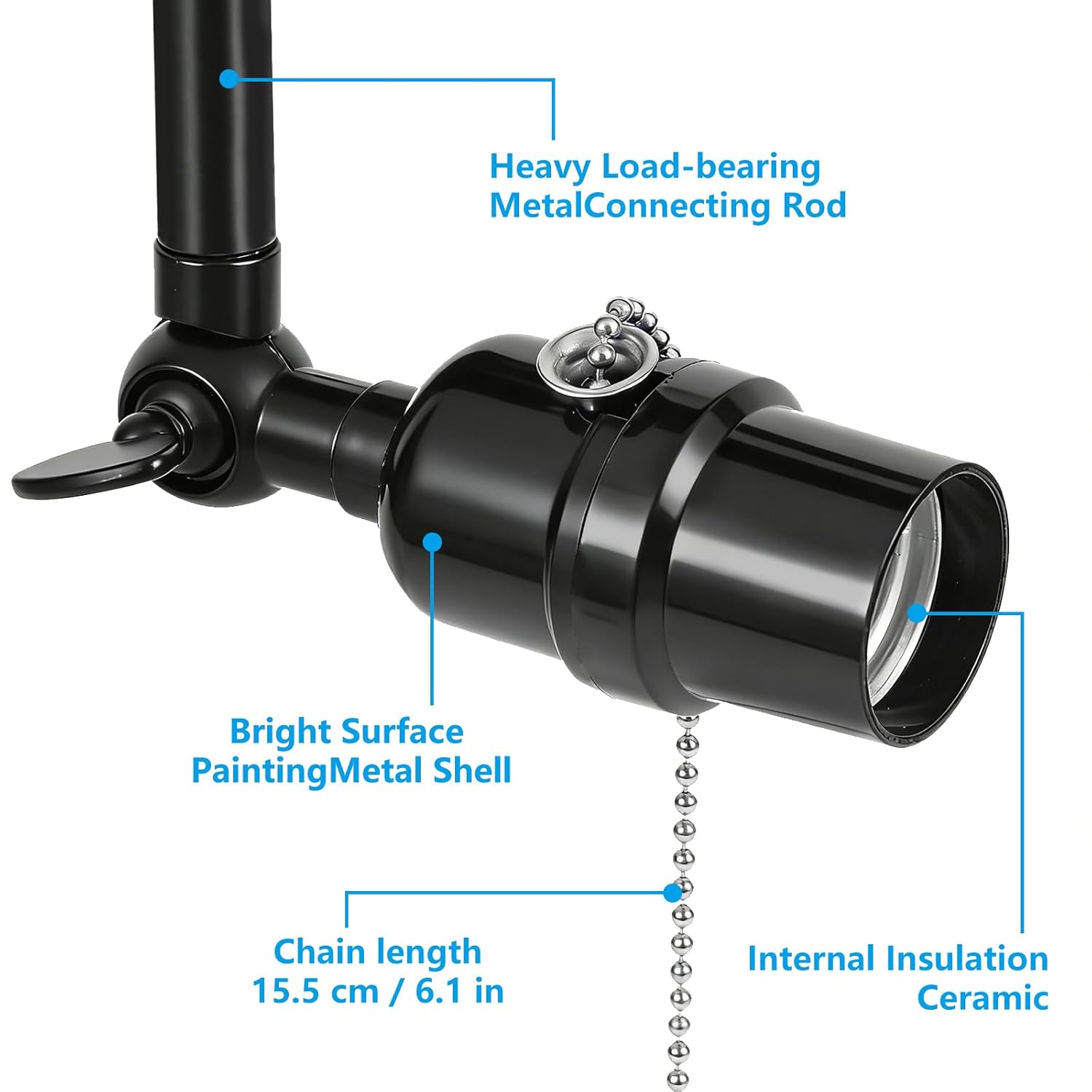 Light Socket Extender - 360° Swivel & 270° Tilt with Pull Chain It also has a pull chain to turn on/off witch also be useful if the switch you'd rather have control of the light from where the light is mounted