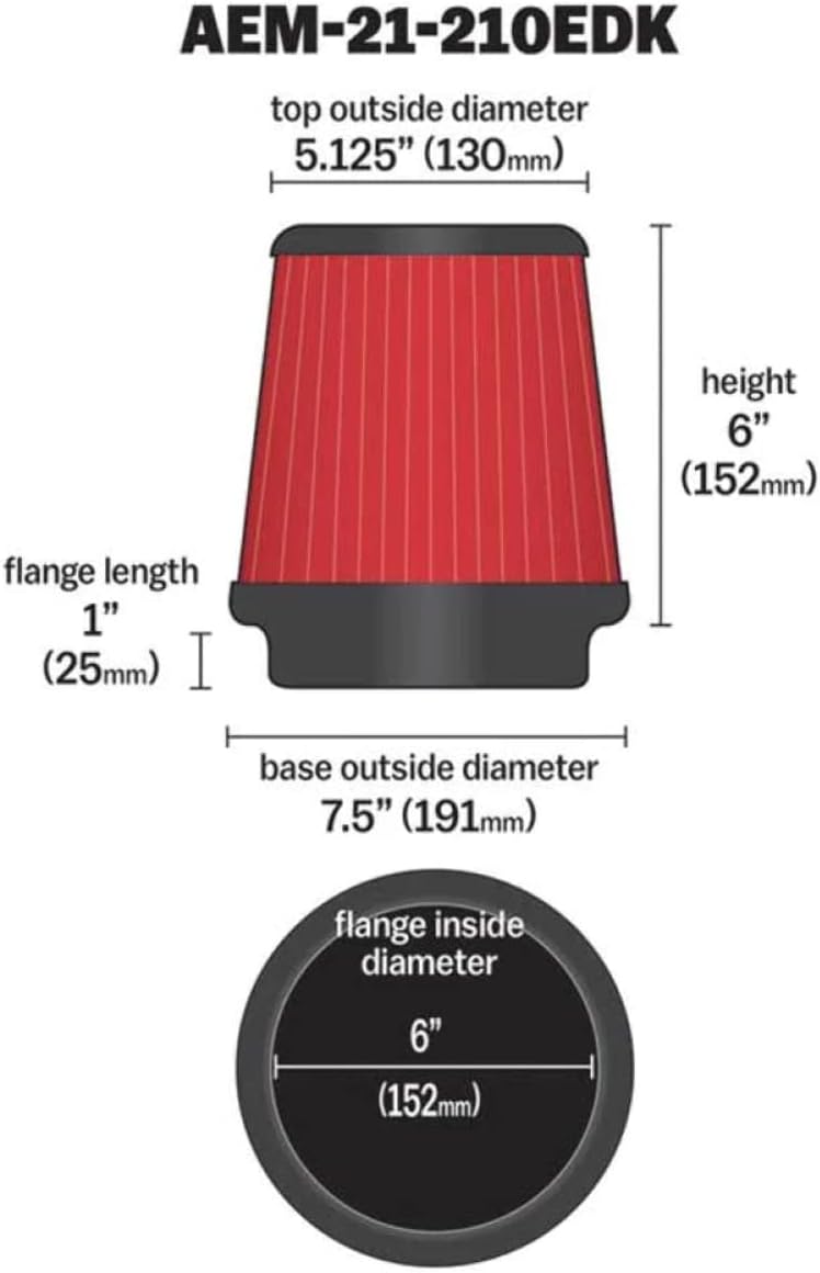 AEM Dryflow Air Filters are washable synthetic air filters designed for an optimum combination of air flow, filtration, and performance. AEM Dryflow filters use an innovative high performance oil-free filtration material that allows easy cleaning, durable service, and excellent filtration. Replacement air filters for street vehicles come with a lifetime limited warranty. Other air filters come with a one year limited warranty.