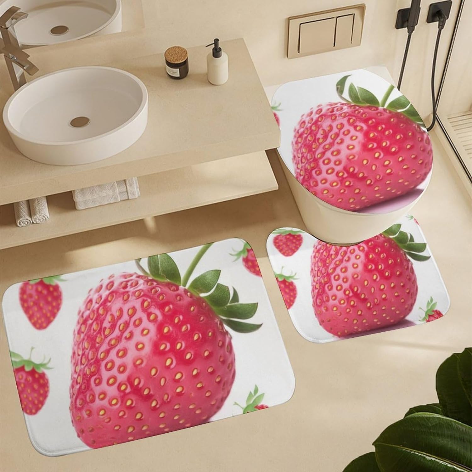 The Strawberry printed bathroom mat set provides a soft and comfortable surface for your feet. Whether you are taking a shower, getting ready for the day, or resting at night, this rug provides you with a comfortable place to step on The Soft bathroom mat contour mats and cover cover Suitable for home bathrooms, guest rooms, bedrooms, living rooms and other places, Washable, not machine washable