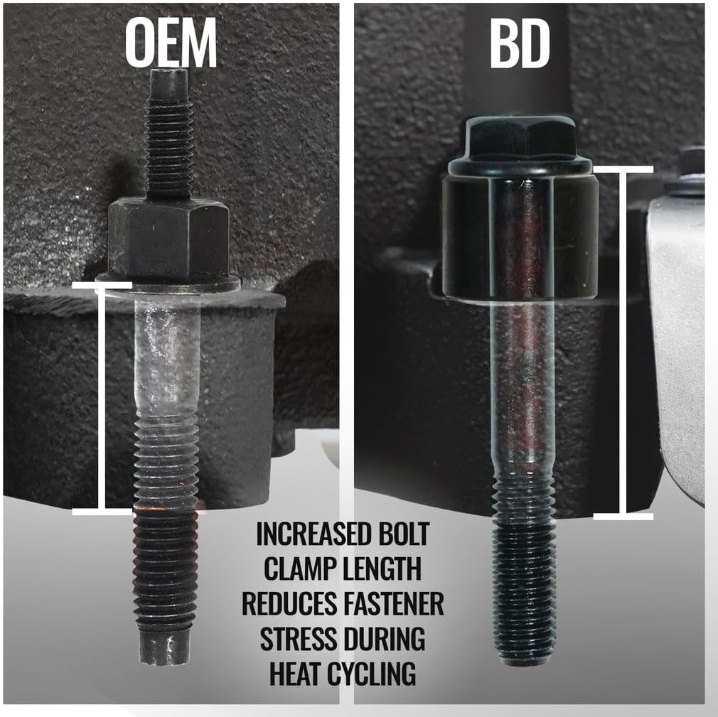 NOTE: 2019+ Vin Decoder for manifold fitment - The 6th digit designates the truck model (XXXXX6XXXXXXXXXXX). If the digit is a 6 or 7 then the truck is a RAM 1500 Classic (DS model) and the BD manifolds will fit your application. Experience unparalleled performance and durability with our enhanced Dodge/RAM truck exhaust manifolds, specifically designed for 5.7L HEMI engines. Our BD upgraded manifolds address common exhaust manifold bolt failures by incorporating extended fasteners and spacers that effectively withstand thermal expansion. In addition, we've engineered independent mounting locations for the heat shield, separating it from the mounting bolts to further enhance reliability. Crafted with precision, our BD Manifolds boast a robust, thicker design, and are constructed from high-silicon ductile iron to combat warping, ensuring your vehicle remains at peak performance for the long haul.