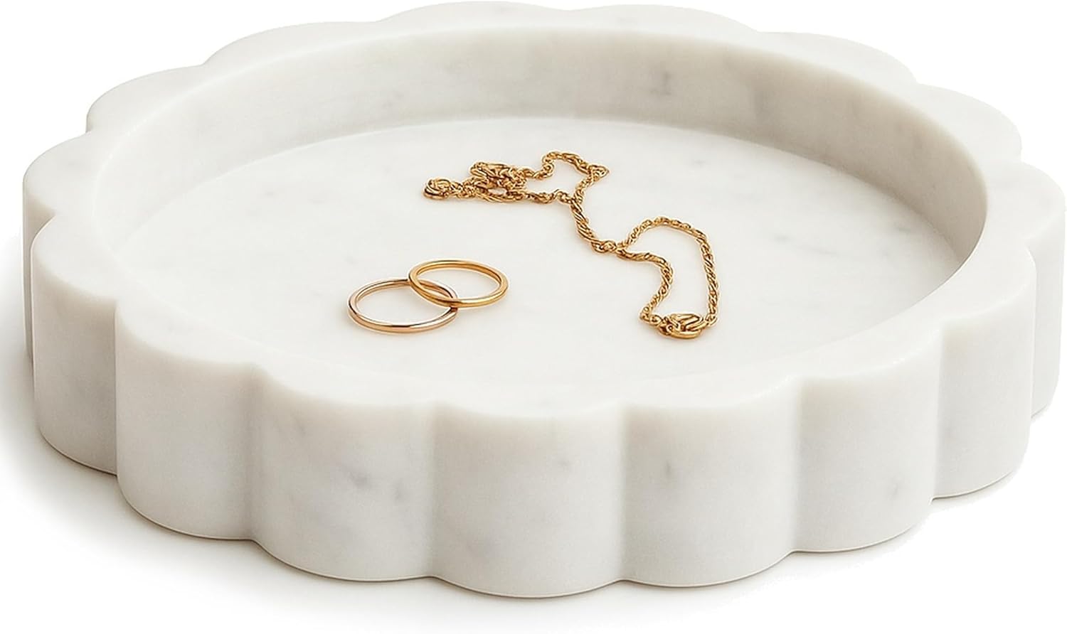 | Product Care Instructions | To care for your beige scalloped marble tray, simply wipe it with a soft cloth, avoid harsh chemicals and hot items |