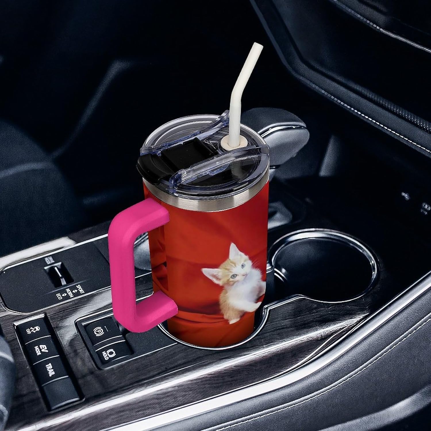 The simple tumbler is double walled and vacuum insulated to keep your drink hot or cold for hours.The cup is outfitted with an ergonomic handle, that is aesthetically designed for comfort. It comes with a straw lid and a straw so you can enjoy your favorite beverage on the go.The bottom of the cup is conveniently sized to fit car cup holders for easy portability. Fill your insulated tumbler with coffee, sweet tea, ice water, milkshakes, juice, cocktail, lemonade and more!If you are looking for the perfect birthday or holiday gift, don't miss this one. It can be a surprise gift for women, friends, family, couples.If you have any questions during your purchase or gifting process, please reach out to us—we're happy to help!