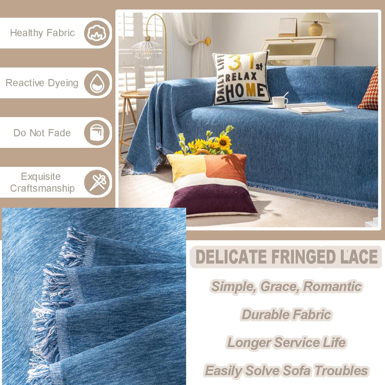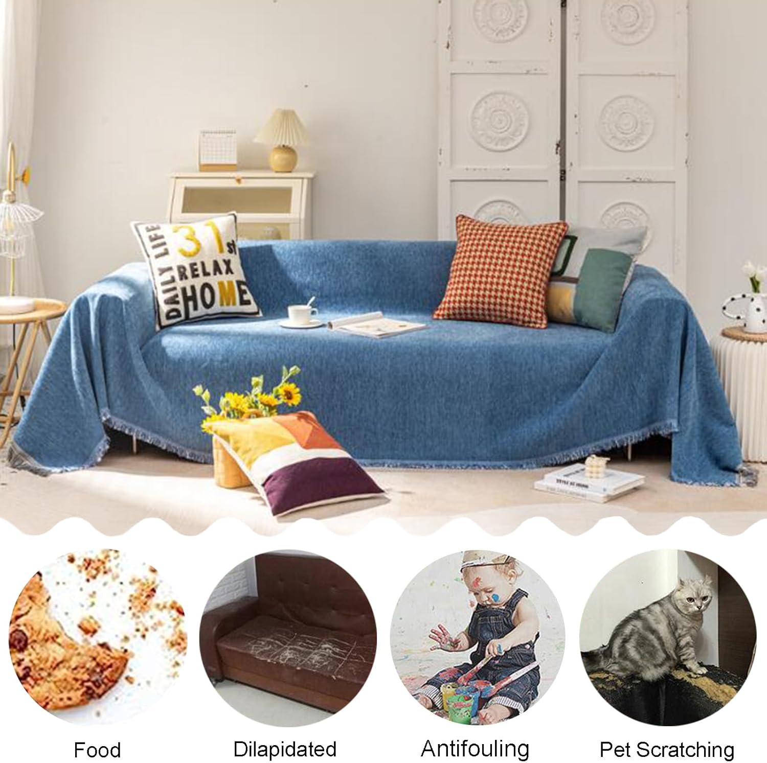 Chenille Sofa Throw Blanket - Large & Small Settee Cover with Tassels Multifunctional Protective Cover for 1/2/3/4 Seater U-Shaped & Armless Sofas Stylish Home Decor