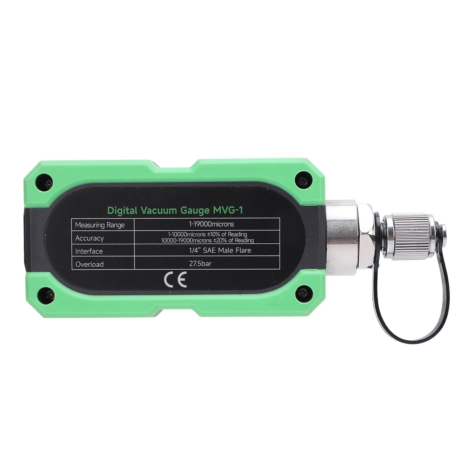 Specification: Item Type: Digital Vacuum Gauge Model: -1 Measurement Range: 0-19000 microns Operating Temperature: -20℃ to 60℃ Port Size: 1/4in Accuracy: ±10% Resolution: 1-400 Microns: 1 , 400-3000 Microns: 10 Microns, 3000-10000 Microns: 100 Microns, 10000-19000 Microns: 250 microns Vacuum Units: Microns, mTorr, inHg, Pa, Torr, KPa, mbar, and psia Battery: 1 x 1000mAh rechargeable li ion battery Maximum Overload Pressure: 27.5 bar How to Use: Power Key: Press to turn on or off the device, backlight will turn on when the device is powered on. Key: Used to select units and increase values during mode setting. SET Key: Long press to enter the set alarm value mode. SAVE/CAL Key: Used to save remind values during setting mode, calibrate fullness, or zero setting. packing list: 1 x Vacuum Gauge 2 x Connectors 11 x Accessories 1 x Storage Bag 1 x Storage Box 1 x User Manual