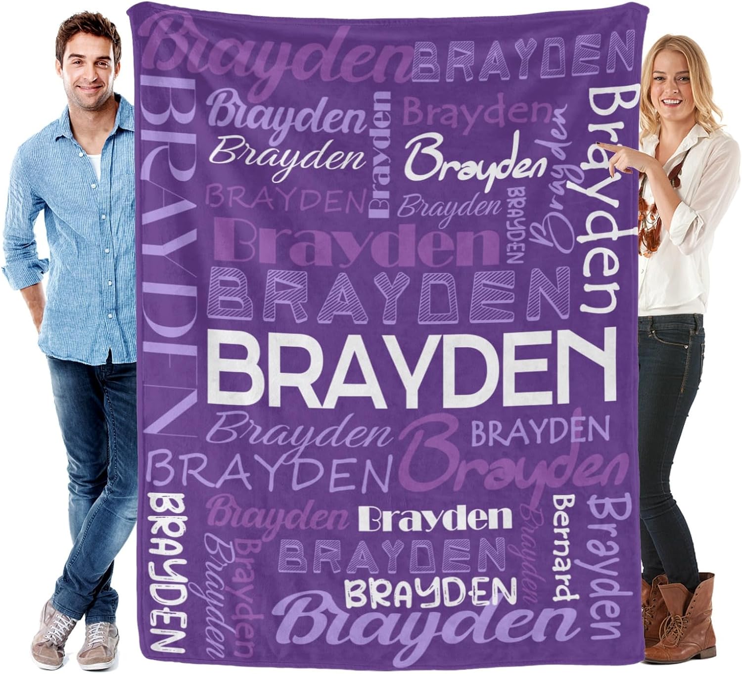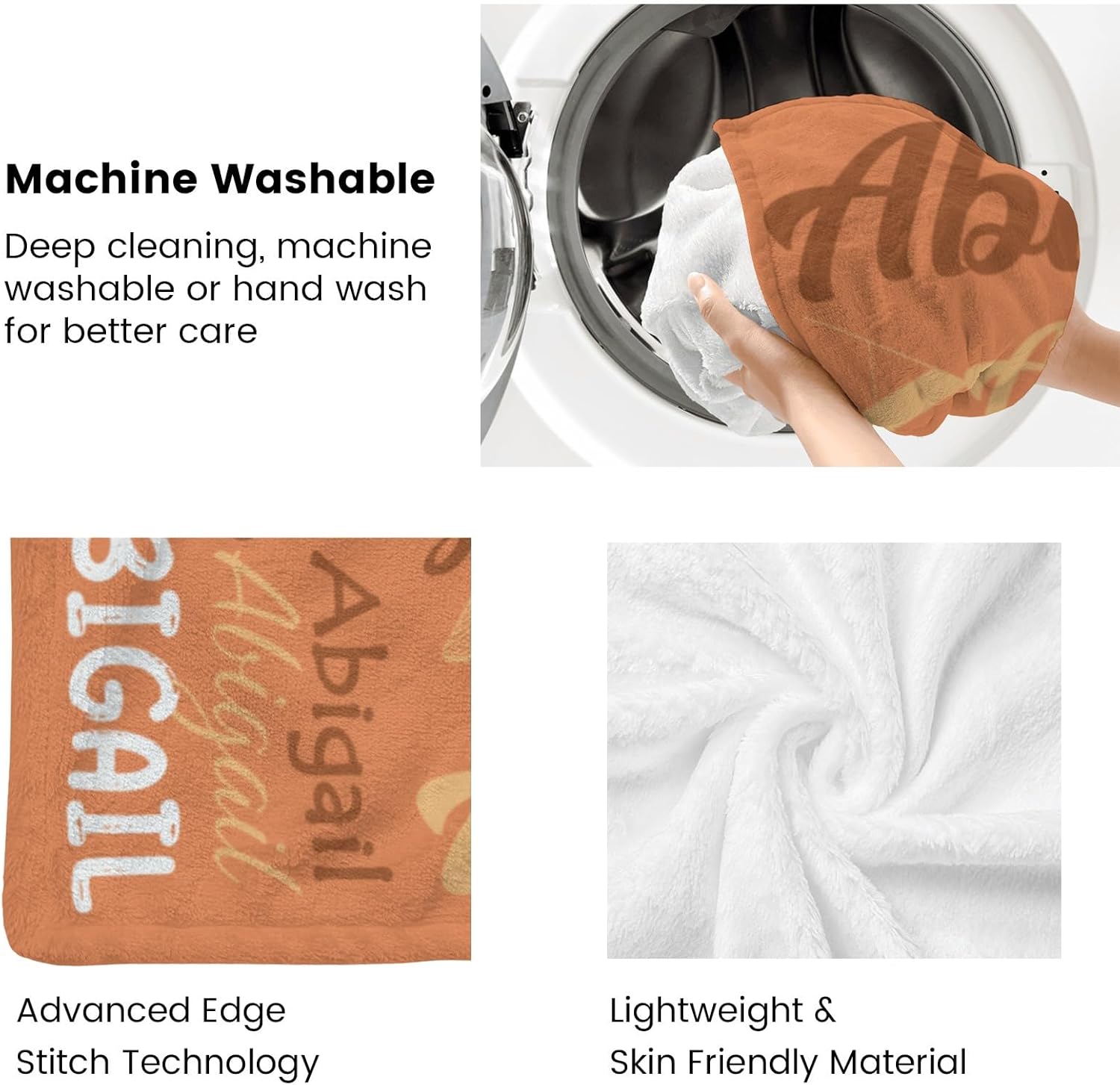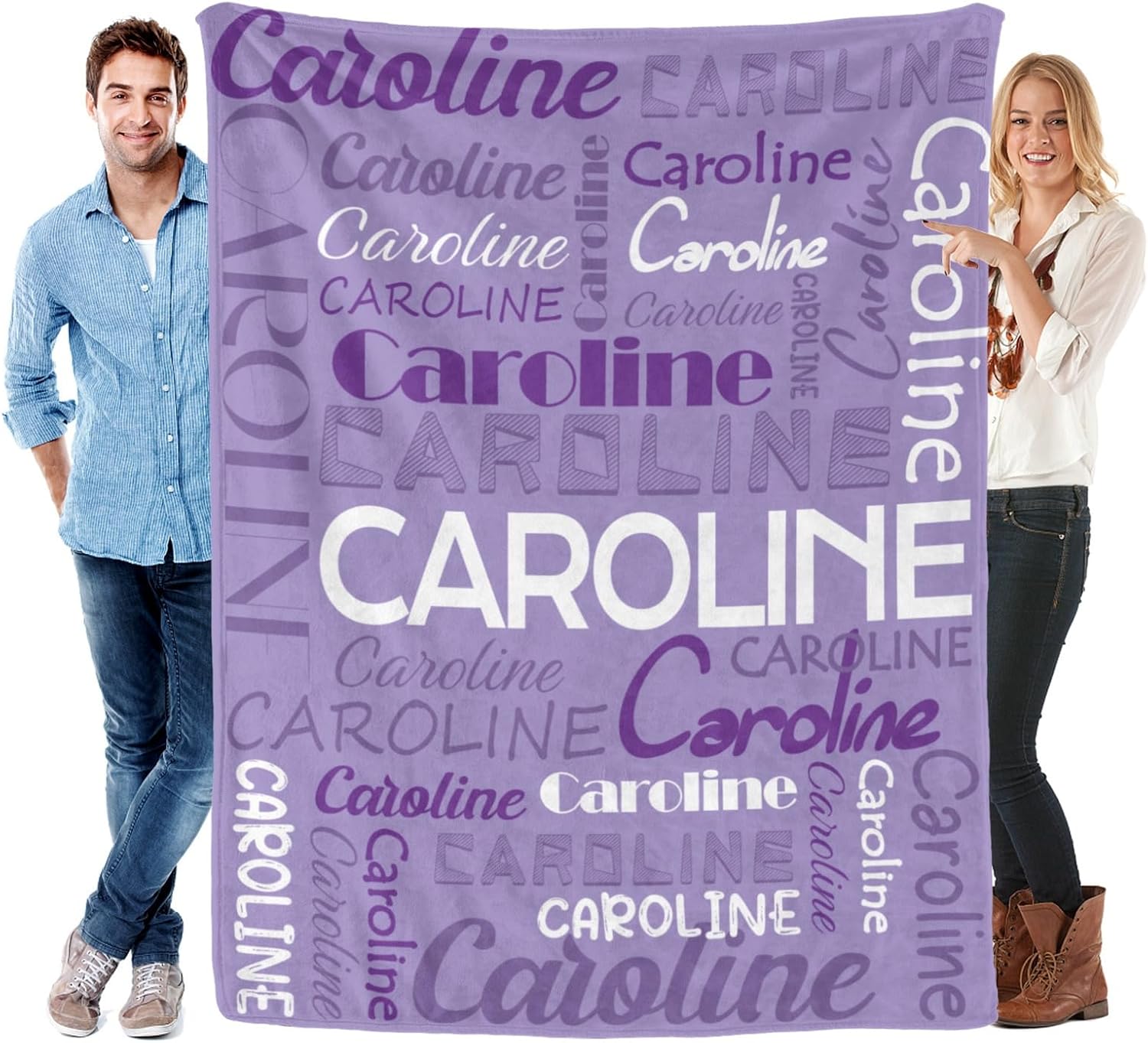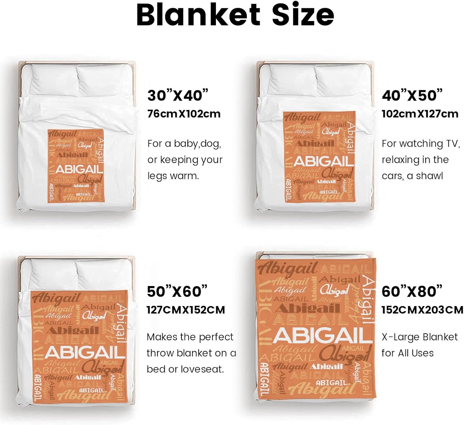 Features: 1.Design your own special fluffy plush ultra-soft micro flannel throw blankets with name or text you want. 2. Made of high quality anti-pilling flannel, which is soft touch, pilling resistance, wrinkle resistance, durable and comfortable, have a good touch and friendly to your skin, your kids, your family. 3. Suitable for all seasons, perfect for bed, sofa, camping, cold movie theater or traveling. 4. Easy to Care: Machine washable or hand washable, tumble dry at low temperature, holds several machine wash and dry beautifully. 5. No matter what name you provide, we will print them well on your personalized blanket, which will be the most unique gifts or souvenirs on various holiday, anniversaries. 6.Perfect gifts for Birthday, Christmas, Wedding, Anniversary Valentine's Day. How to Customize: This product is designed with the tools that you can create a very exclusive gift. 1.Choose the size and color you want 2. Click "Customize Now" button 3.Provide your names or your text,we will achieve your expected effect as plan 4.Add to cart. Attention Please: 1. The name you provide should be UPPERCASE name, up to 12 characters, letters only. Name will be replicated multiple times and fonts as displayed. 2.The other side of the blanket is white color.