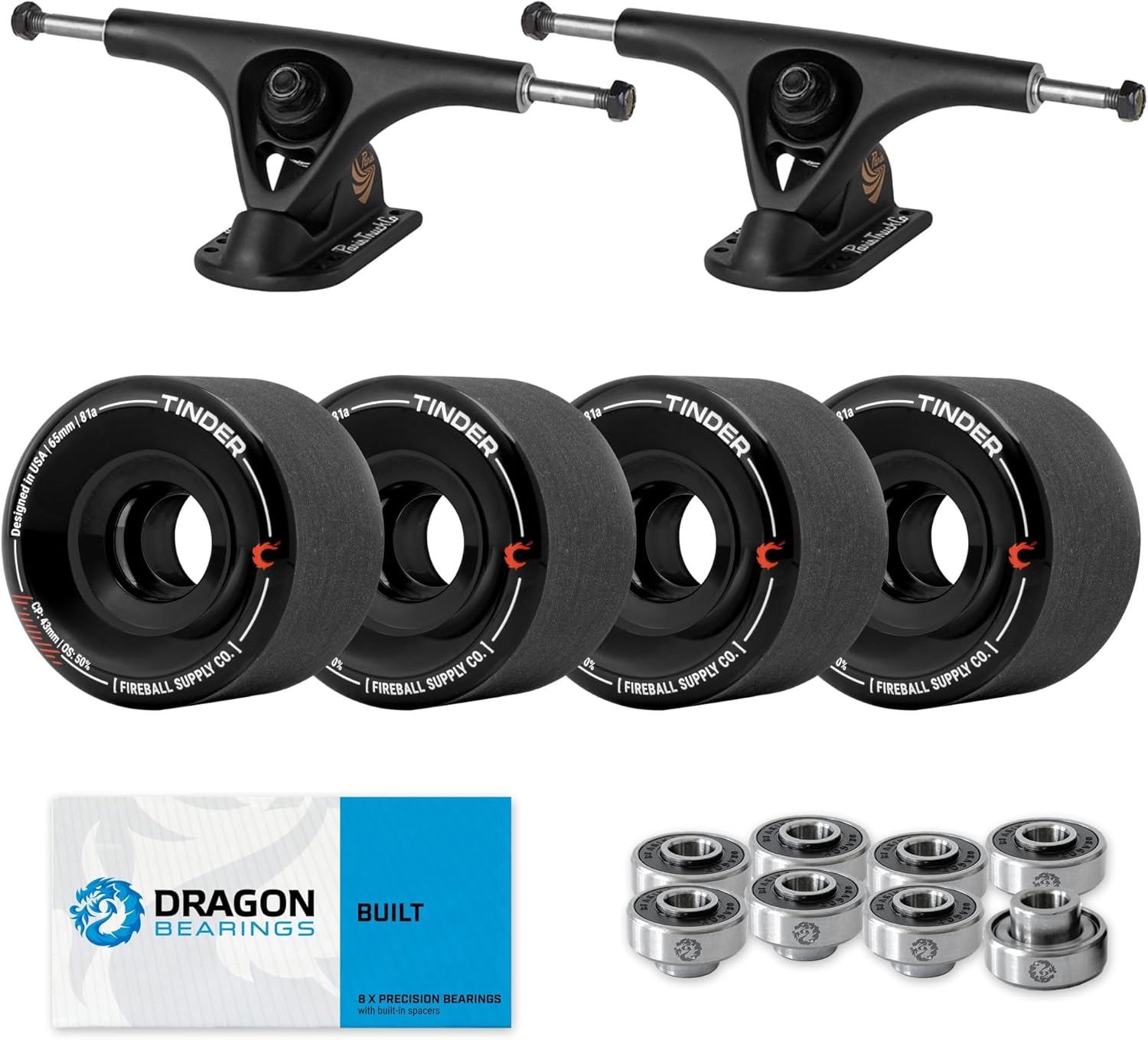 Paris V2 180mm Double Longboard Trucks Set (50 Degree) x 2. Paired with USA made Fireball Tinder 60mm Wheels, and Fireball Dragon BUILT Bearings for the smoothest, quickest ride. BUILT Bearings are designed to keep dirt and debris out, for long lasting performance, guaranteed.