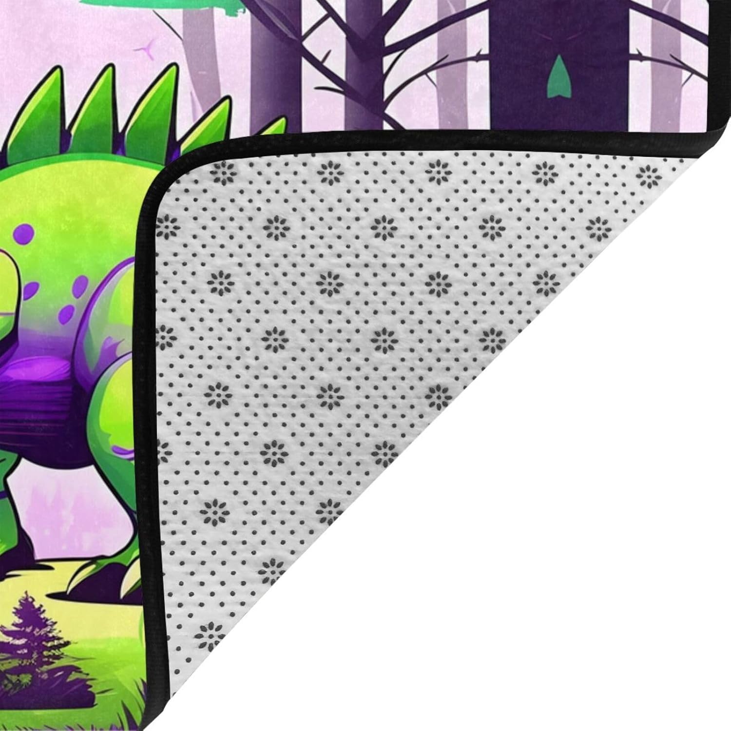 This Green dinosaur printed decorative carpet is made of polyester flannel, which is delicate and soft to the touch, with tight and regular pile. It will not pill or fade after long-term use, and will always look like new. The middle layer uses high-density memory foam, which can automatically adjust according to the foot shape and pressure, providing precise massage for tired feet and relieving fatigue. The bottom is designed with non-slip plastic bottom non-woven fabric, which can firmly grip the ground even when it encounters water or on smooth surfaces, ensuring the safety of the elderly and children. It is easy to clean daily, can be machine washed or hand washed, and is wear-resistant and does not shed. Exquisite stitching technology and high-quality tailoring, with smooth edges, are suitable for a variety of scenes such as bathrooms, living rooms, and bedrooms. Non-slip, comfortable, and durable, adding a touch of intimacy and elegance to your life.