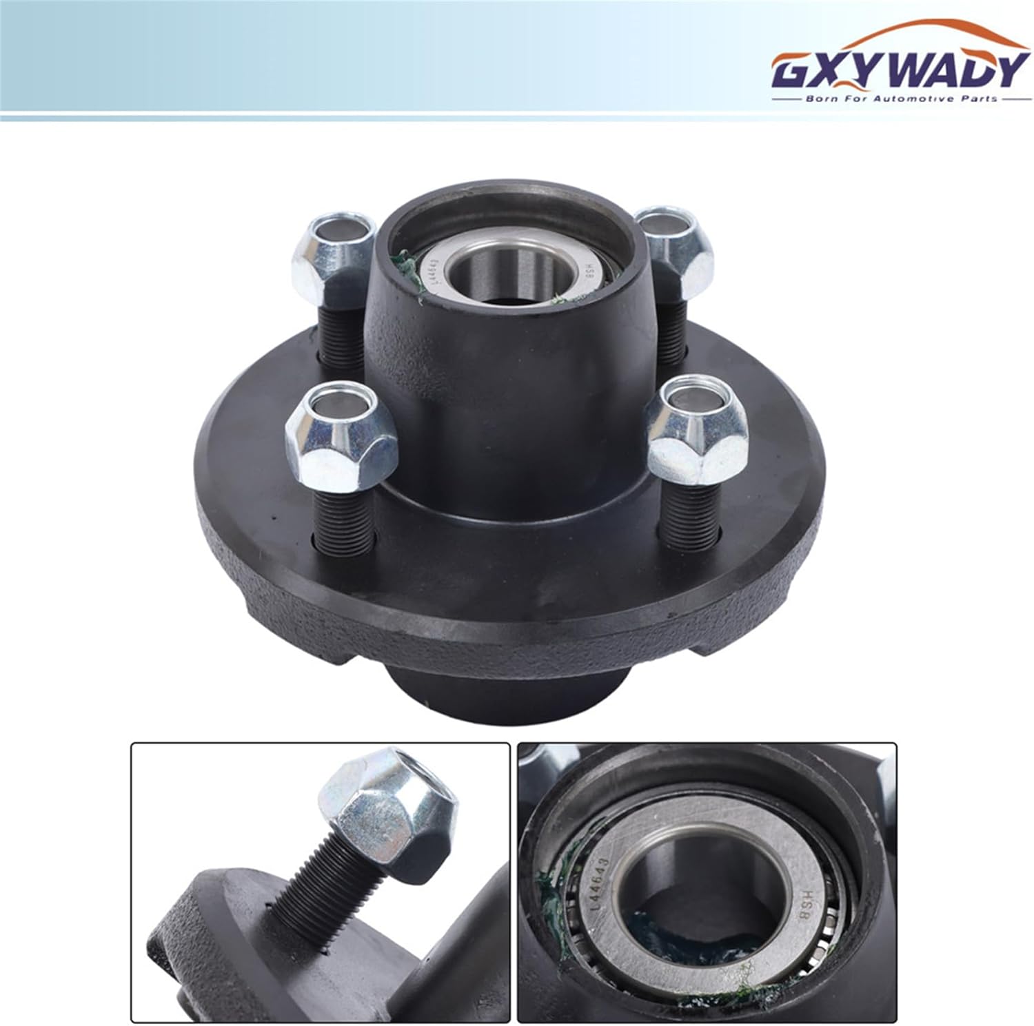 2 Sets Pre-Assembled 4 on 4 Inch Trailer Hub Kit with Trailer Bearing Kit Replacement for 2000 lbs 1 Inch SpindlePackage includes:2 x 4 on 4" plated axle hub4 x L44643/L446102 x oil seals2 x dust covers with rubber plugs8 x 1/2"-20 nuts2 x split pins2 x spindle nuts2 x spindle washers2 x rubber plugs