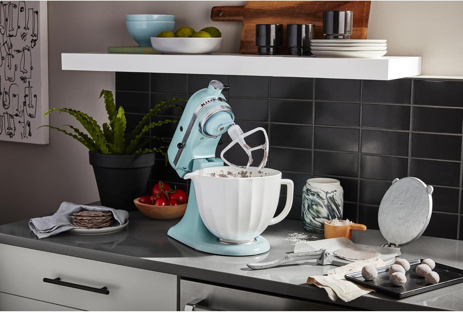 Who says making beautiful dishes and meals has to be all form and function? Get inspired to make even more when you accessorize your stand mixer with this beautiful 5 Quart White Shell Ceramic Bowl - with broader columns, utilizing 3-dimensional intrigue, in a muted, matte white framework for a sophisticated palate. This strong-yet-beautiful ceramic bowl is freezer, microwave, dishwasher and oven-safe up to 475 degrees, and made with durable ceramic to resist chipping, cracking, crazing and staining. Fits all 4.5- and 5-quart KitchenAid Tilt-Head Stand Mixers, sold separately.