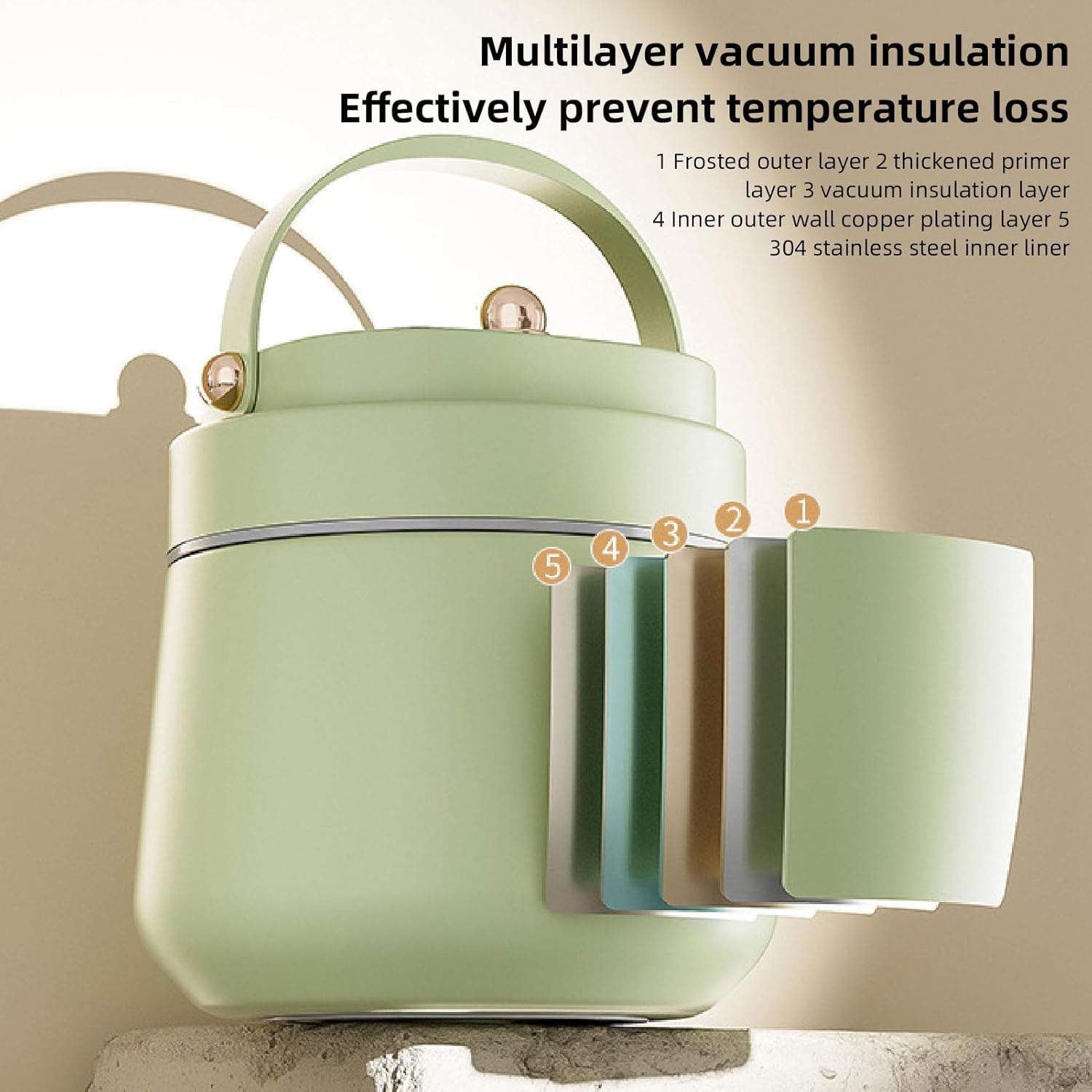 Spec: Item Type: Insulated Food Container Material: 304 Stainless Steel Weight: Approx. 1035.00g / 36.51oz PackageList: 1 x Insulated Food Container 1 x Insulated Bag 1 x Folding Spoon 4 x Chopstick Parts