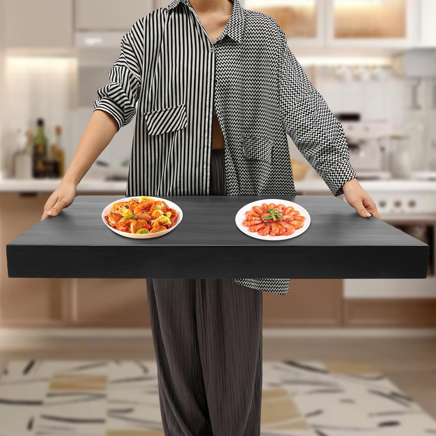 DescriptionPlace our stove cover over your stove top or sink to create more space on your counters to work with. It can be used as a kitchen chopping board to cut vegetables or as a tray for vegetables and fruits, cups and utensils, etc. Its smooth and flat surface does not hurt your hands and is easy to clean. The clear wood grain presents the original texture of wood, bringing you a better experience.ApplicationThe Noodle Board Stove Cover is suitable for small apartments, kitchenettes, RVs, and somewhere that needs extra kitchen space.SpecificationColor: BlackShape: RectangleStyle: Modern MinimalistAssembly Required: NoMaterial: Pine WoodProcess: Charcoal Burning, Polishing, GrindingLoad-bearing Capacity: 20kg/44.09 lbsProduct Interior Size: 72.39*53.34*5.08cm/28.5*21*2inProduct Exterior Size: 75*55.88*6.35cm/29.4*22*2.5inPackage Size: 79*60*6.5cm/31.1*23.62*2.56inGross Weight: 5.5kg/12.13 lbsNet Weight: 5.2kg/11.46 lbsPackage Included1* Stove CoverNotes1.Please do not place on hot surfaces or open flame. Wait for the stove to cool before placing it on the stovetop.2.There may be some small defects, patterns, etc. on the surface of wood products, which is a normal phenomenon and does not affect their use.3.Please do not put it in the dishwasher for cleaning, nor soak it, just wipe it with a damp towel, and dry it after cleaning.4.It fits most stovetops, but please note that it may not fit all models. If the cover does not fit your stovetop, you can turn it upside down like a tray so it will fit on the stovetop.
