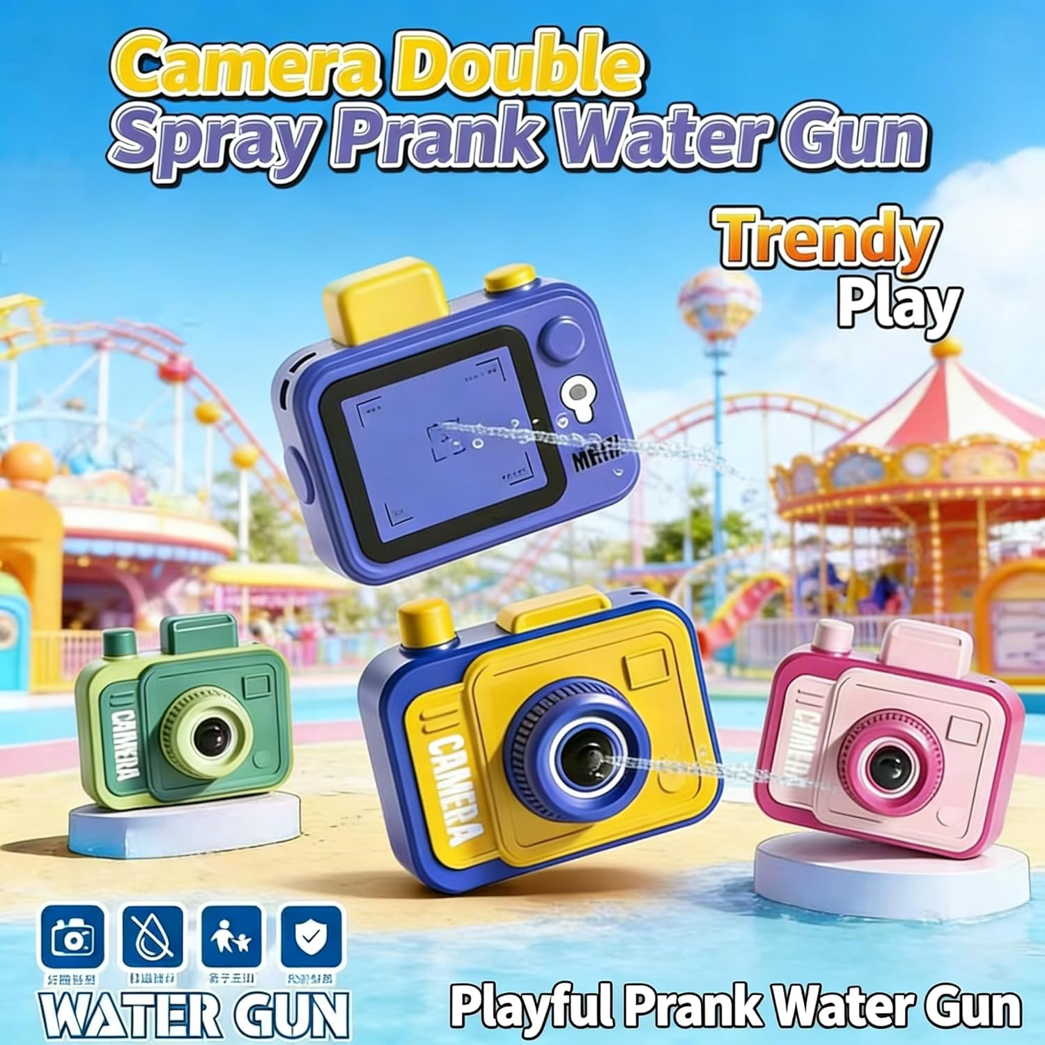 The Ultimate Summer Prank Toy Looking for the ultimate prank water gun to level up your pool parties? This camera water gun combines stealth and surprise in one clever design. Disguised as a mini digital camera, it’s the perfect water gun pink accessory for kids and adults who love playful tricks. Why It Stands Out: Two-Way Action: With reverse water gun technology, you can spray forward or backward—great for senior assassin water gun games and one-on-one battles. Built for Fun: Lightweight and compact, yet durable enough for teens and adults. Ready for Any Scene: From beach trips to birthday parties, this firework water gun delivers exciting water blasts that create a “firework” effect, perfect for outdoor summer toys collections. Safe & Reliable: The leak-resistant body and non-toxic ABS material make it a worry-free choice for parents. Grab your camera water gun today and get ready to soak up the fun!