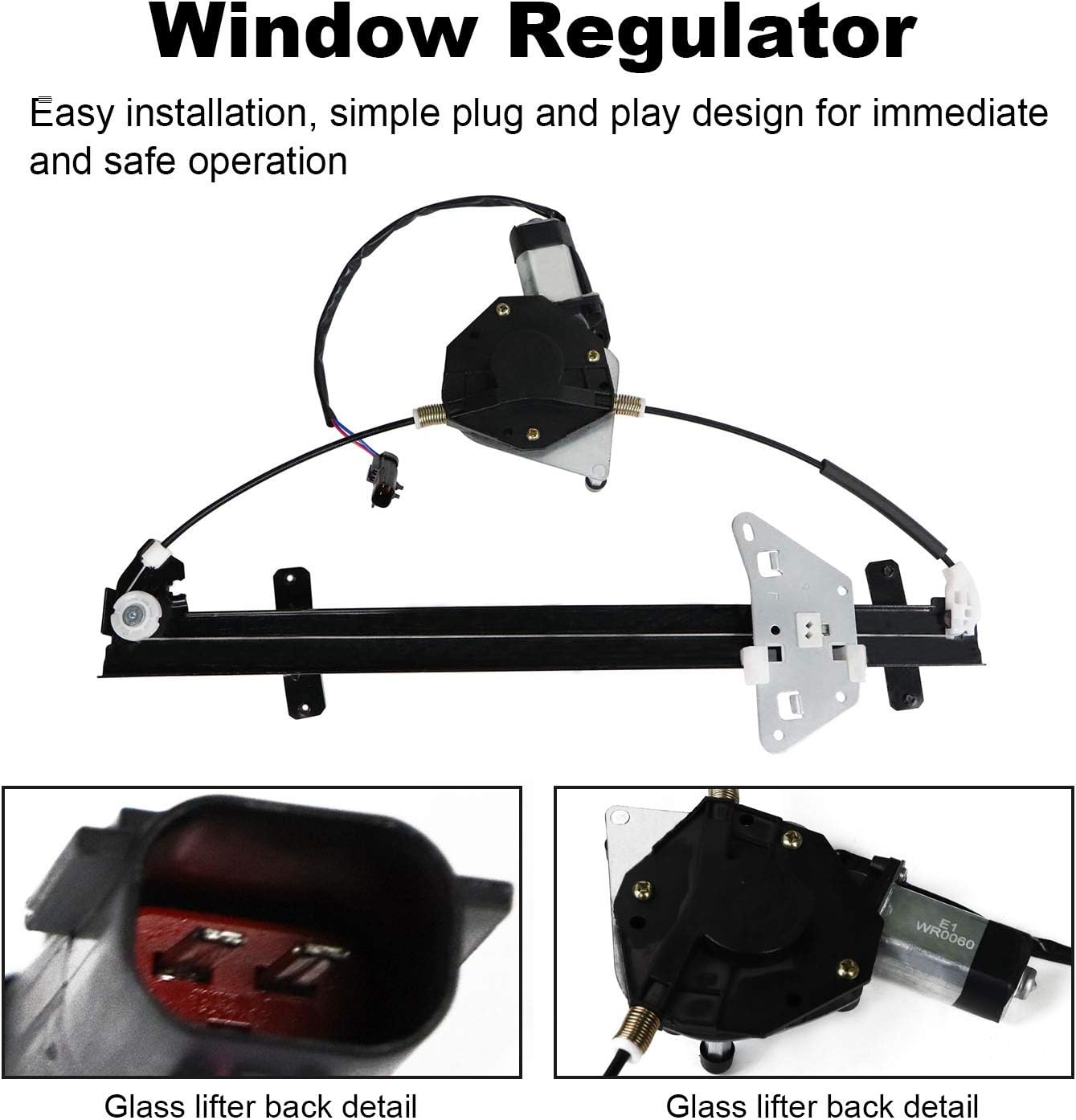Package: Power Window Regulator Assembly with MotorPosition: Rear Left passeger SideReference for part number:741-598, 5073325AC, 55256495AF, 55256495AJ, 55256495AL, 11A125, 2552-6132L, 660220, 86852, REPD491701, REPD491704, WL41044FitmentCompatible with DodgeFit for Dakota Sport 2001-2004Fit for Dakota STL 2001-2004Fit for Dakota SLT Plus/SXT/Sport Plus 2004Fit for Durango 1998-20031.With electric drive window lift, it is easier to operate while saving energy2.Through the machinery can play a precise control of the window lift, avoid stuck or offsetMaintenance Suggestions:1.Clean the window guide regularly to avoid sand accumulation2.Avoid raising and lowering multiple Windows at the same time to reduce motor load3.When selecting the replacement regulator, please select the appropriate regulator