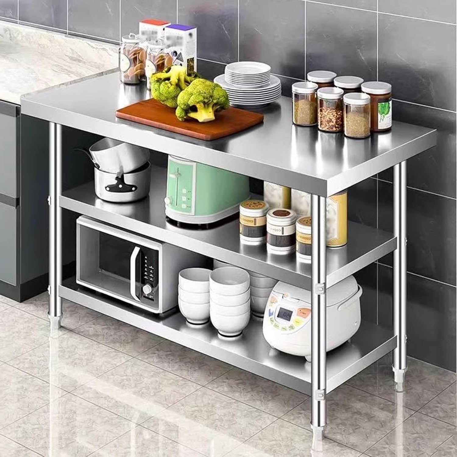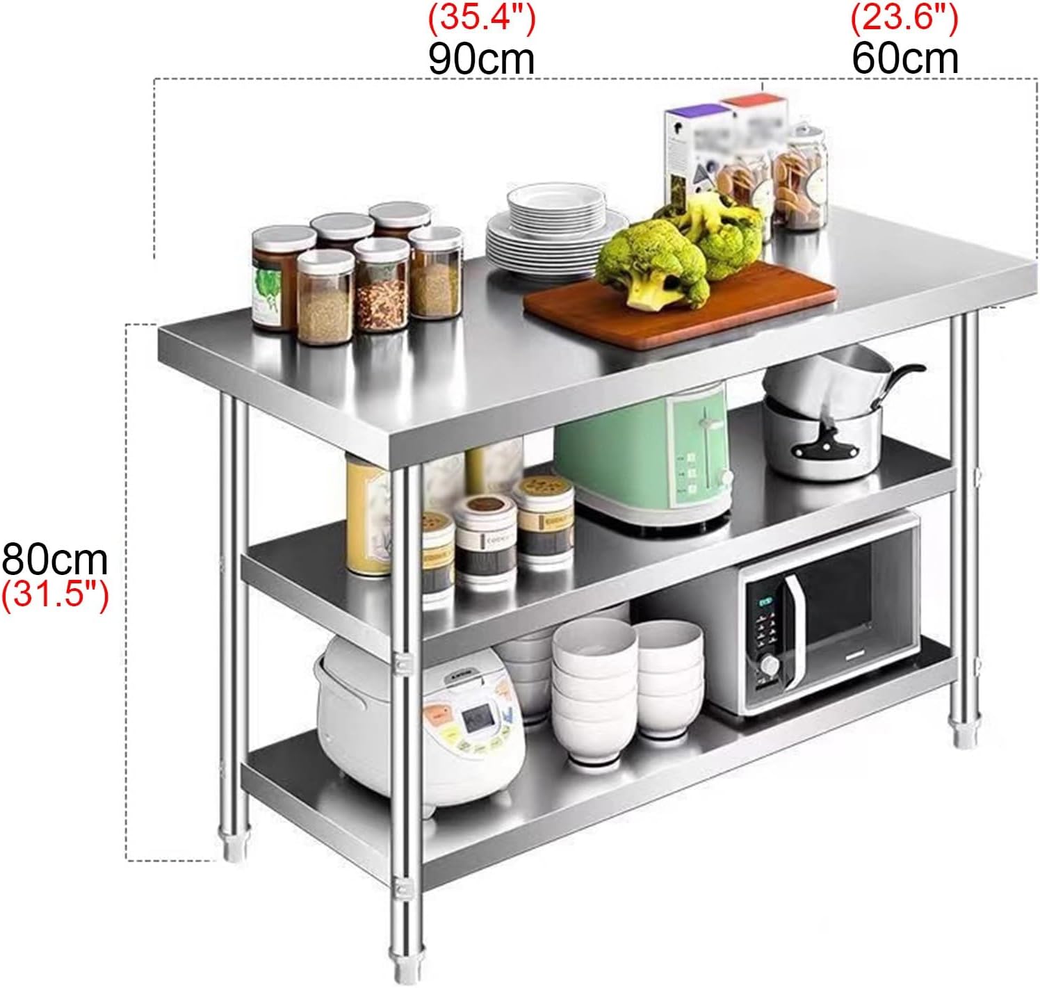 Stainless steel workbench has a wide range of applications suitable for potlucks, outdoor patios, restaurants and hotels, banquets, laundry areas, tool sheds, workshops, garages, and its versatility ensures effortless use in a variety of environmentsOur workbenches are simple in design, complete with accessories, easy to assemble and easy to useProduct Name: Utility workbenchMaterial: stainless steelSize:90*60*80centimeters(35.4*23.6*31.5")100*60*80centimeters(39.4*23.6*31.5")120*60*80centimeters(47.2*23.6*31.5")Product list: Workbench*1 (other items not included)Attention Tip:Please note that there may be a little color difference due to different screen displaysManual measurement, there may be 1-3 centimeters error, please understand