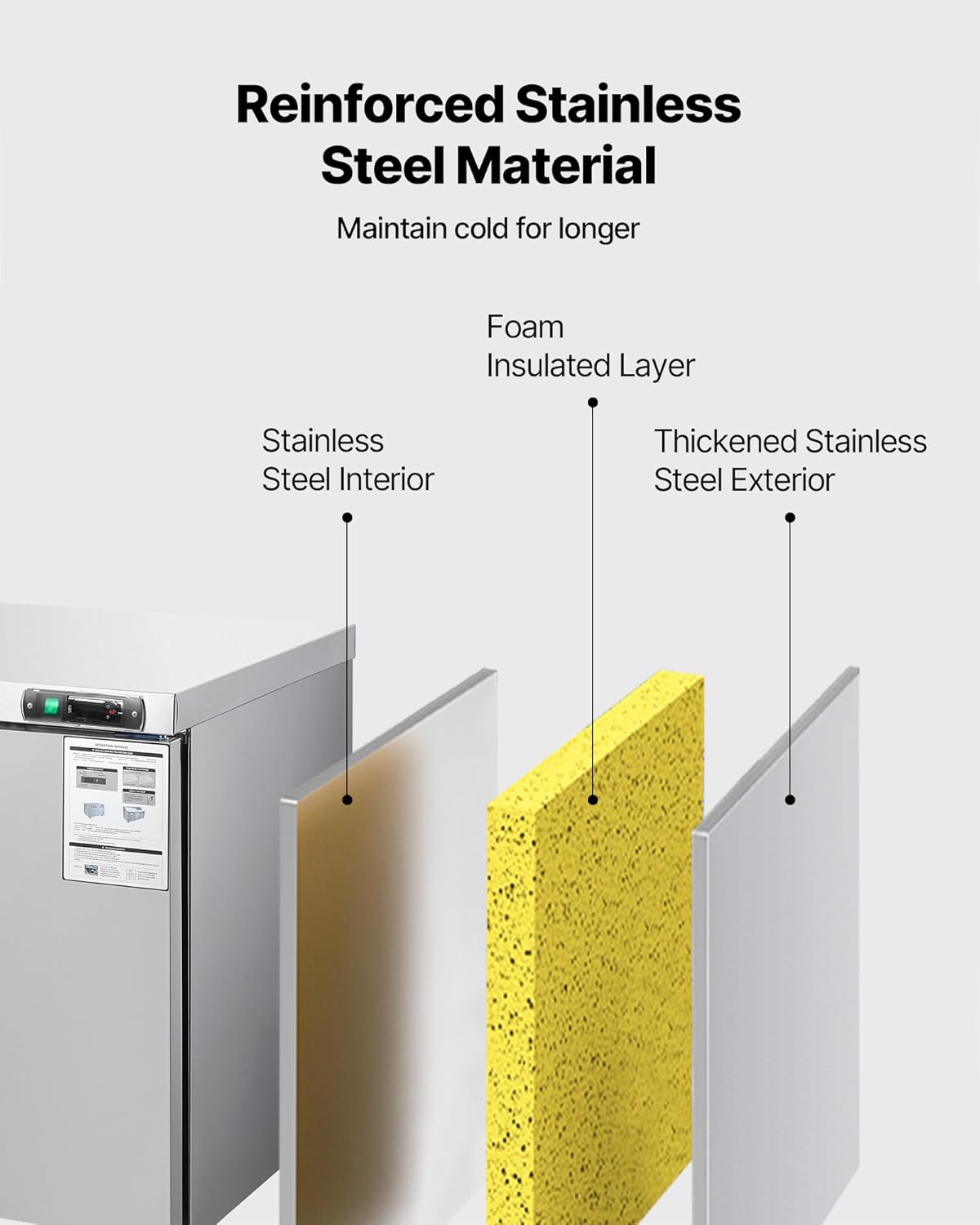 | Item Type Name | 14.8 Cu.Ft Worktop Freezers Undercounter with LED Auto Lighting and Lockable Door, 2 Doors Food Freezing Prep Worktable, Stainless Steel Prep Frozen Table with Casters |
