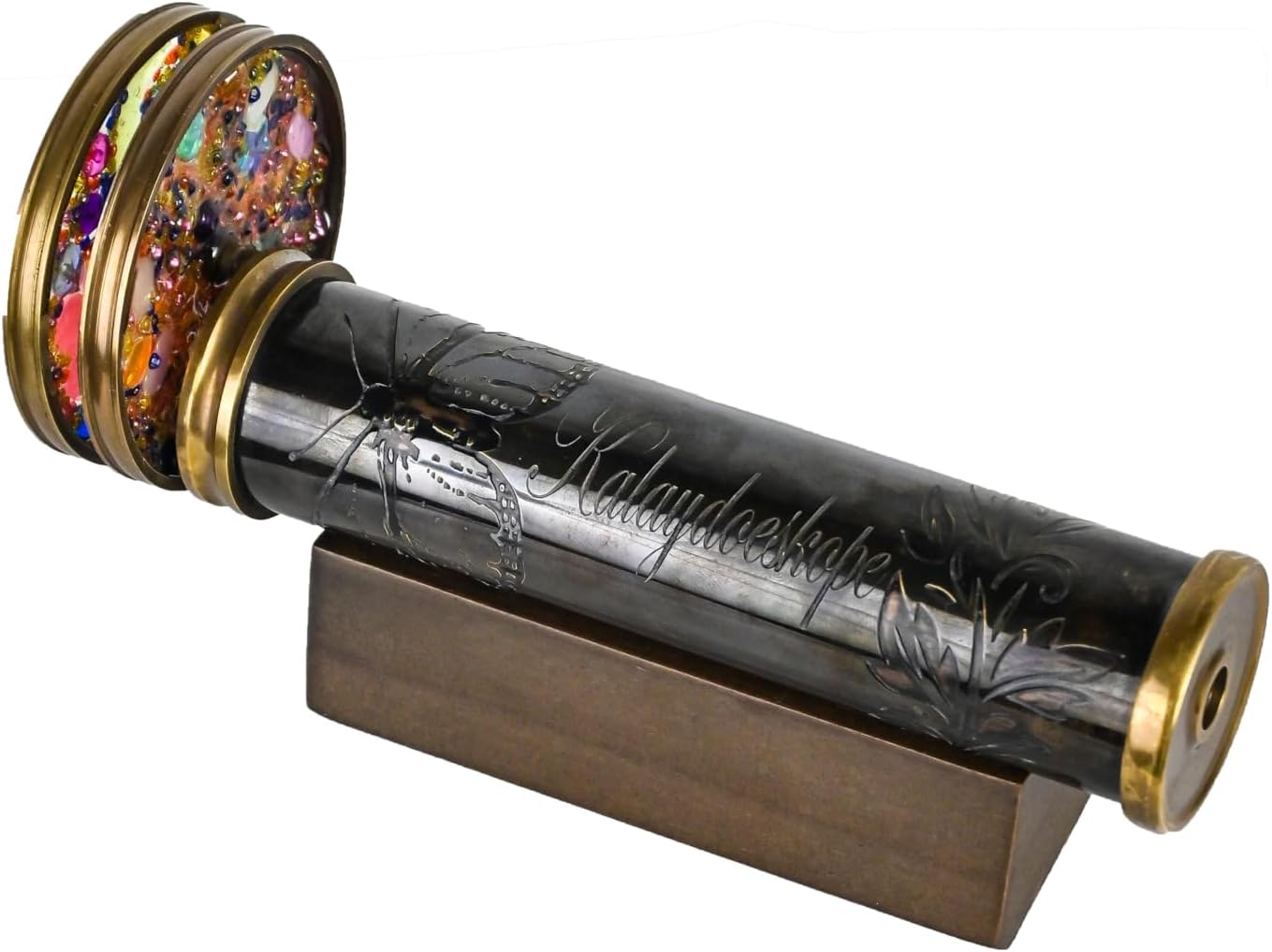 | Included Components | Brass Kaleidoscope, Wooden Base |